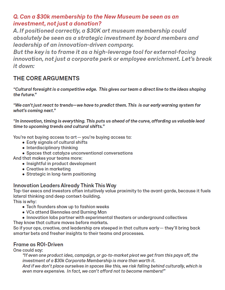 2x corporate membership revenue — Owned a B2B LinkedIn program framing membership as access to early cultural shifts; partnered with Development to build narrative, KPI framework, lead pool, and compounding content strategy.